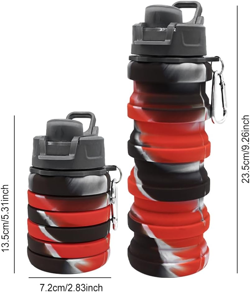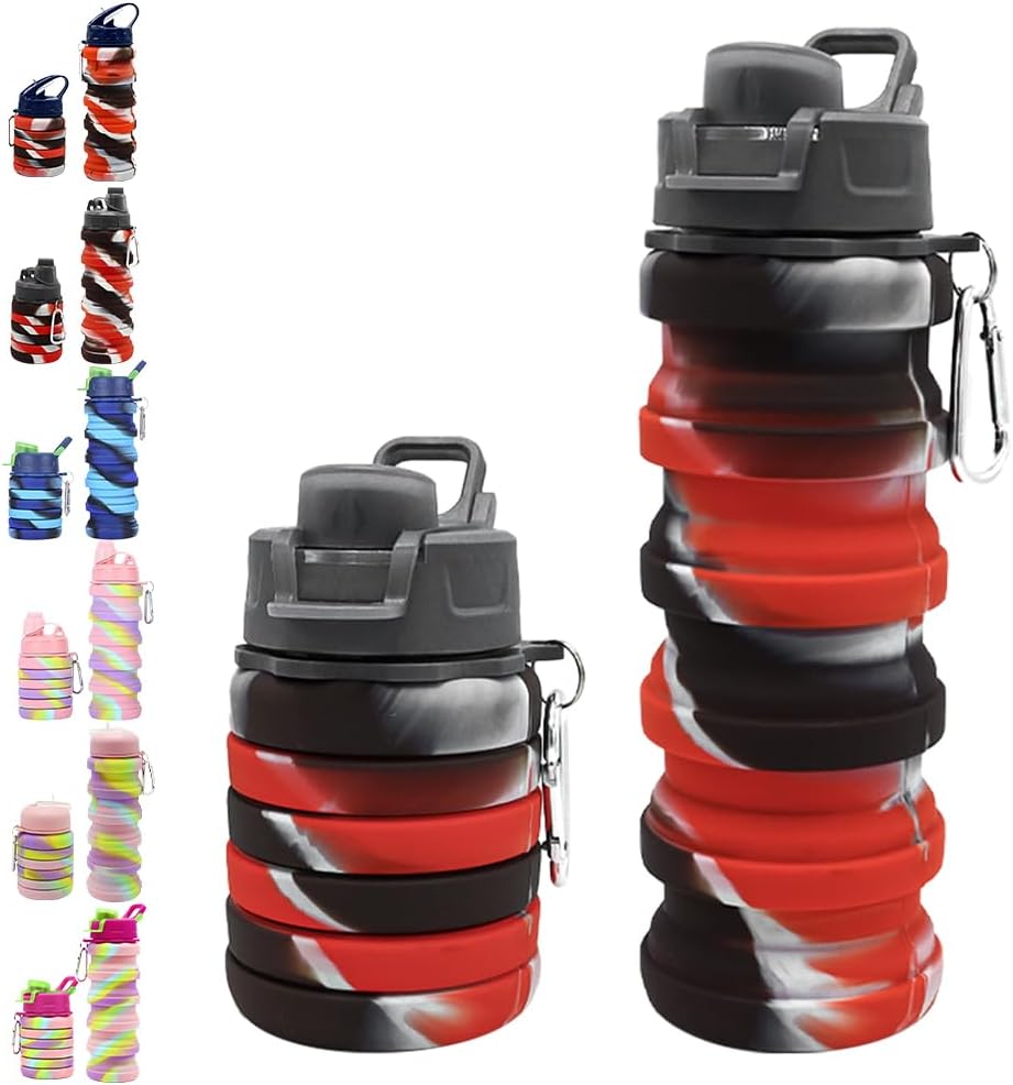 Silicone Collapsible Water Bottles, 16oz 500ml Portable Foldable Expandable Water Bottle Sports Cups, Leak Proof Reusable BPA Free, for Outdoor Activities Travel (B-Black red)